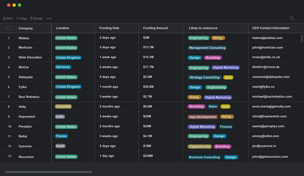 Growing an agency is a pain in the a**. Always thinking about where to find new companies you can work with is as stressful as they come. Well this is no more. Get access to 600+ handpicked startups that you can reach out to build a business relationship with all with the support of a community of experts that have your back! 💪.